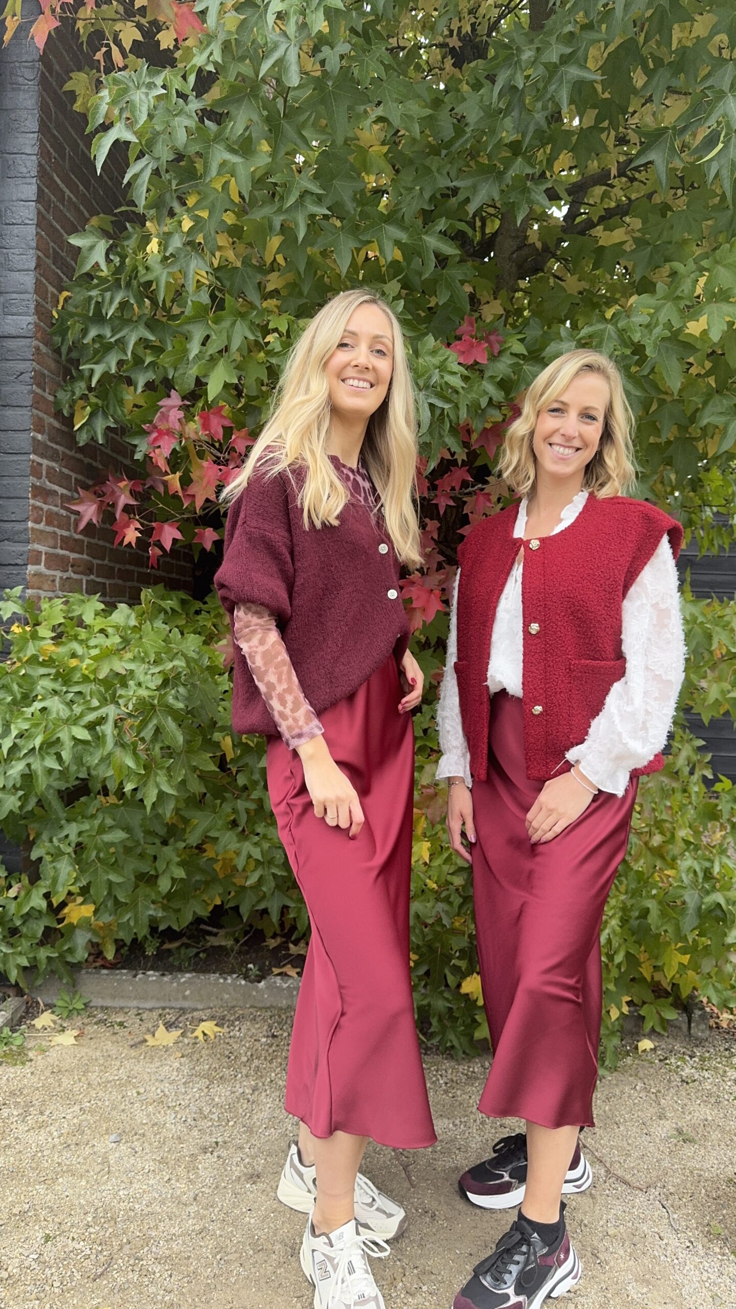 Lynn is 176cm groot en Karen is 167cm groot, ze dragen allebei maat TU.