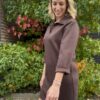 Jurk uit soepele sweaterstof en knopen bovenaan. De mouwen kan je zowel opgerold als normaal dragen.
